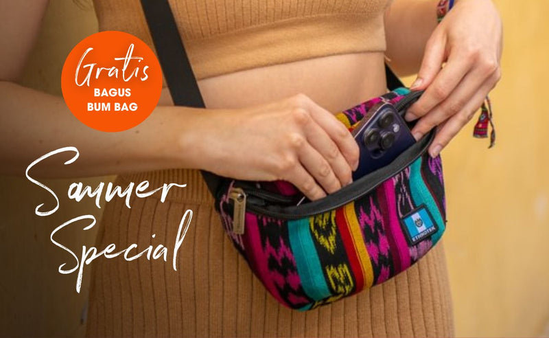 Um die Sommerabenteuer zu feiern, schenken wir dir eine KOSTENLOSE Bagus Bum Bag (Wert: 49 €) bei allen Bestellungen über 150 €.