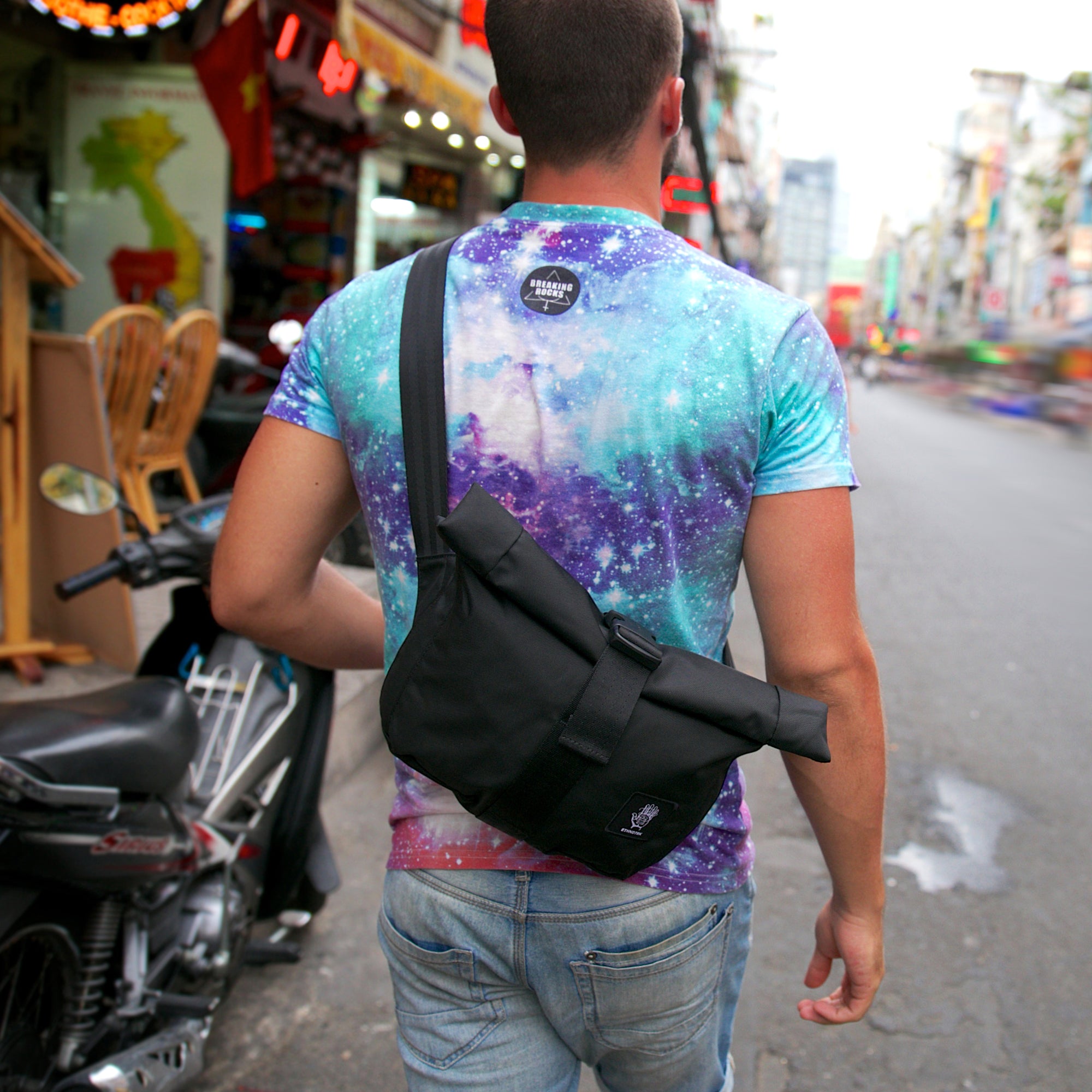 Het oprolbare hoofdvak kan extra worden beveiligd met twee drukknopen. Hierdoor kunt u het volume vergroten wanneer de tas niet is opgerold. De Cyclo Travel Sling is perfect voor dagtripjes of als tas voor waardevolle spullen tijdens het reizen. Hij biedt voldoende ruimte voor al uw essentiële spullen en wiegt moeiteloos op uw rug.