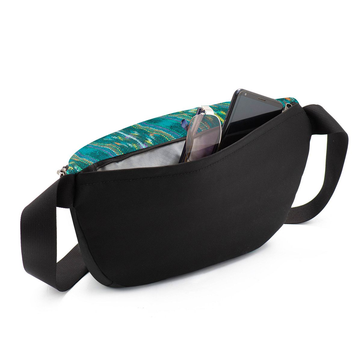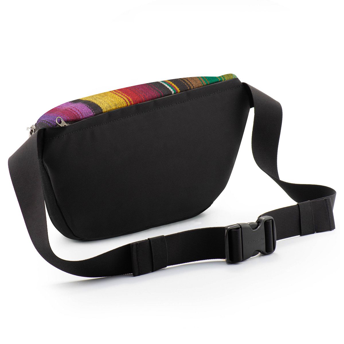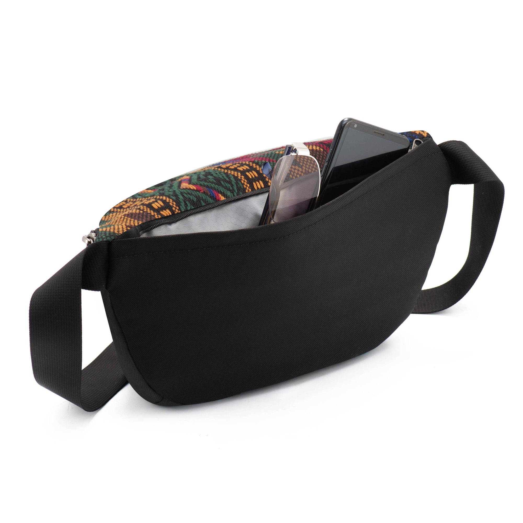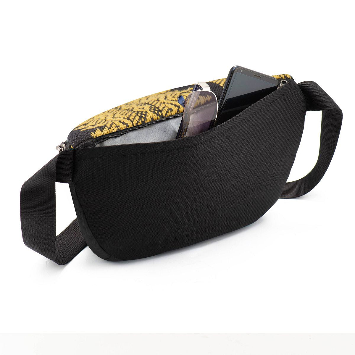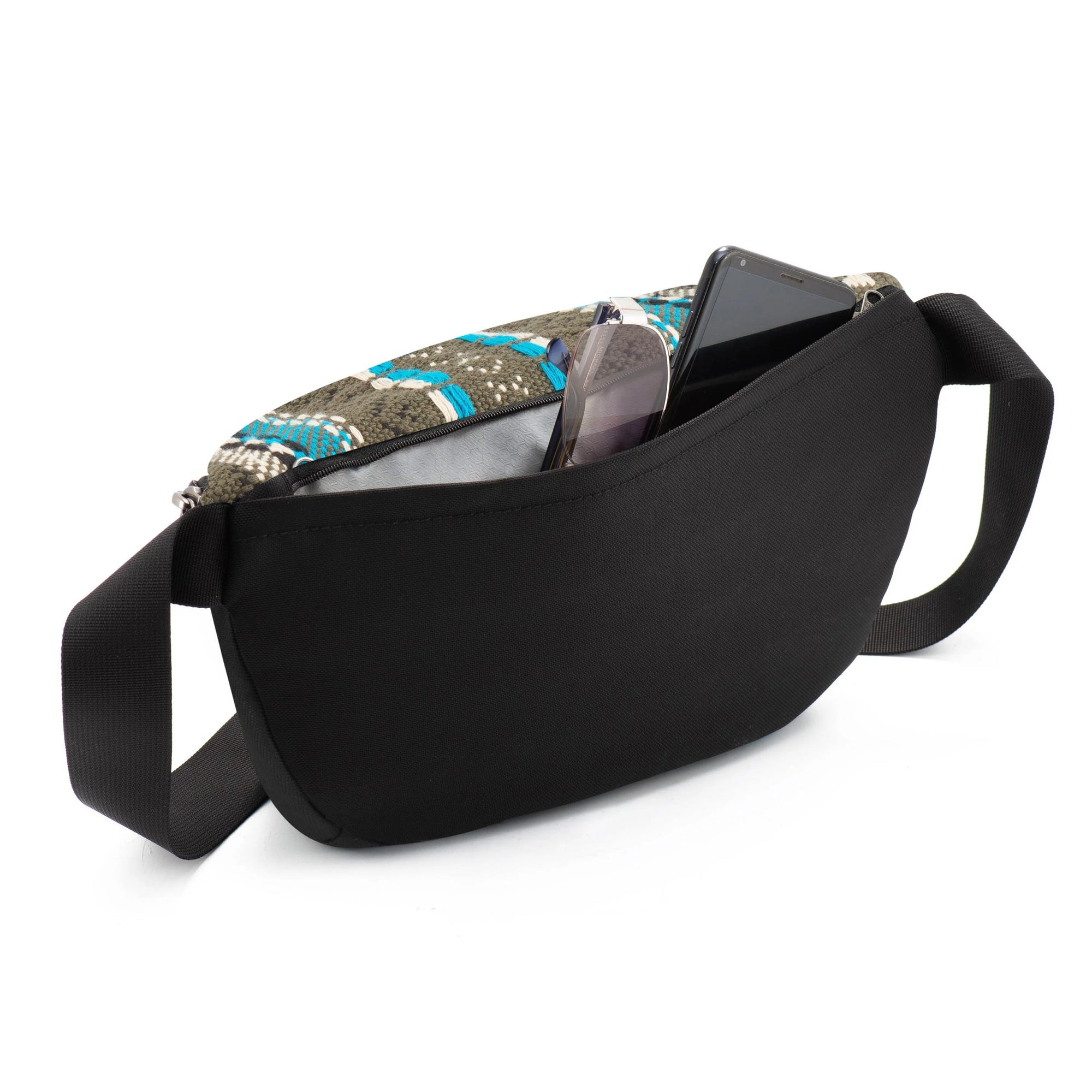 Het grootste deel van de tas is gemaakt van waterafstotend PET Recycled Tech-materiaal, vervaardigd uit 100% gerecyclede plastic flessen. Een discreet, nauwsluitend vak met ritssluiting aan de achterkant biedt veilige opbergruimte voor een paspoort, contant geld of reisdocumenten. Het hoofdcompartiment is gevoerd met waterafstotend ripstop-materiaal en heeft een geïntegreerd gaasvak met ritssluiting en een sleutelclip.