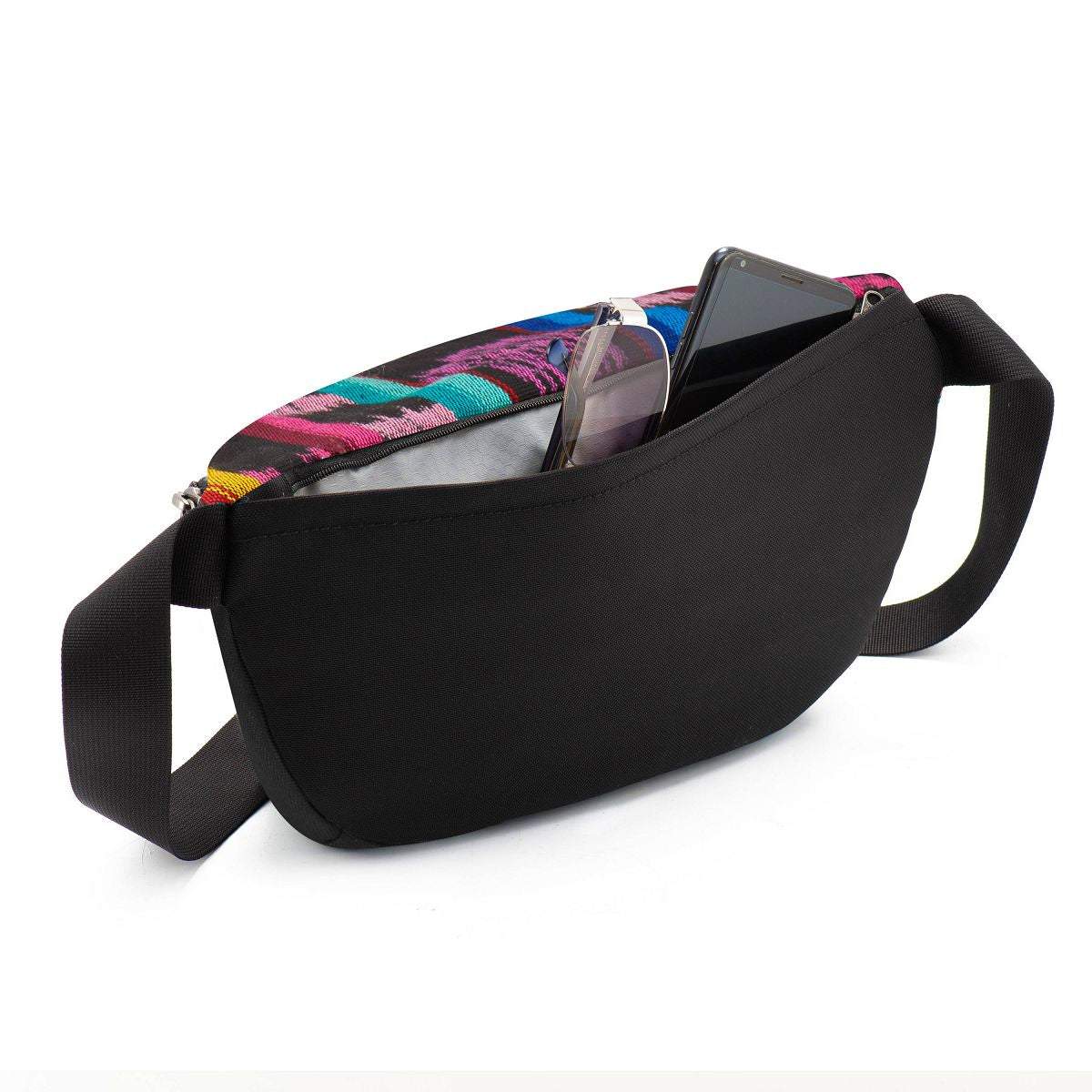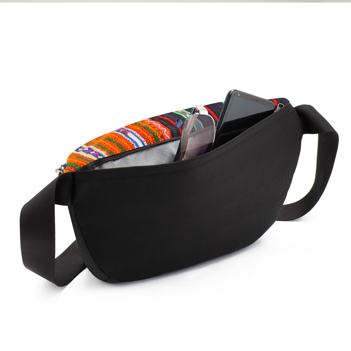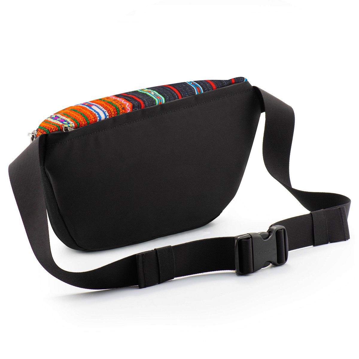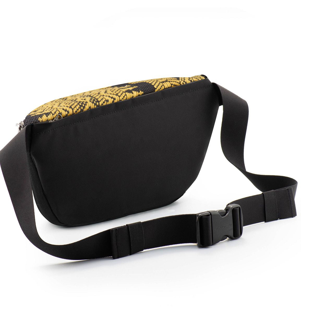 Het grootste deel van de tas is gemaakt van waterafstotend PET Recycled Tech-materiaal, vervaardigd uit 100% gerecyclede plastic flessen. Een discreet, nauwsluitend vak met ritssluiting aan de achterkant biedt veilige opbergruimte voor een paspoort, contant geld of reisdocumenten. Het hoofdcompartiment is gevoerd met waterafstotend ripstop-materiaal en heeft een geïntegreerd gaasvak met ritssluiting en een sleutelclip.
