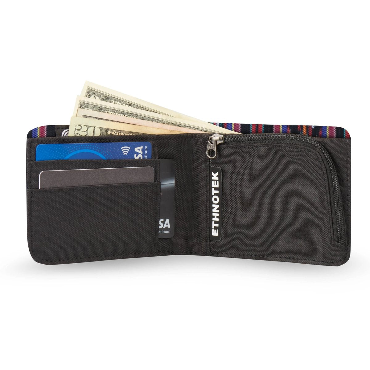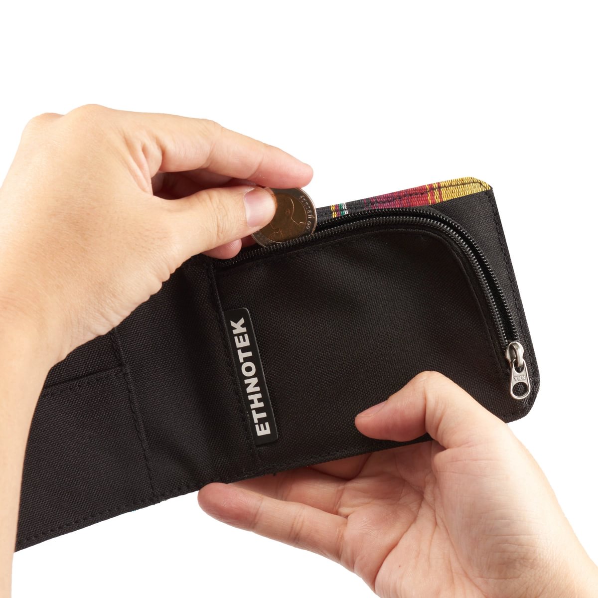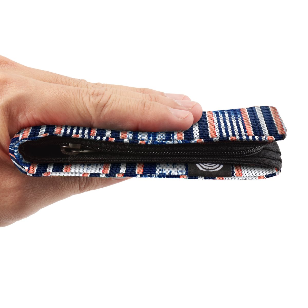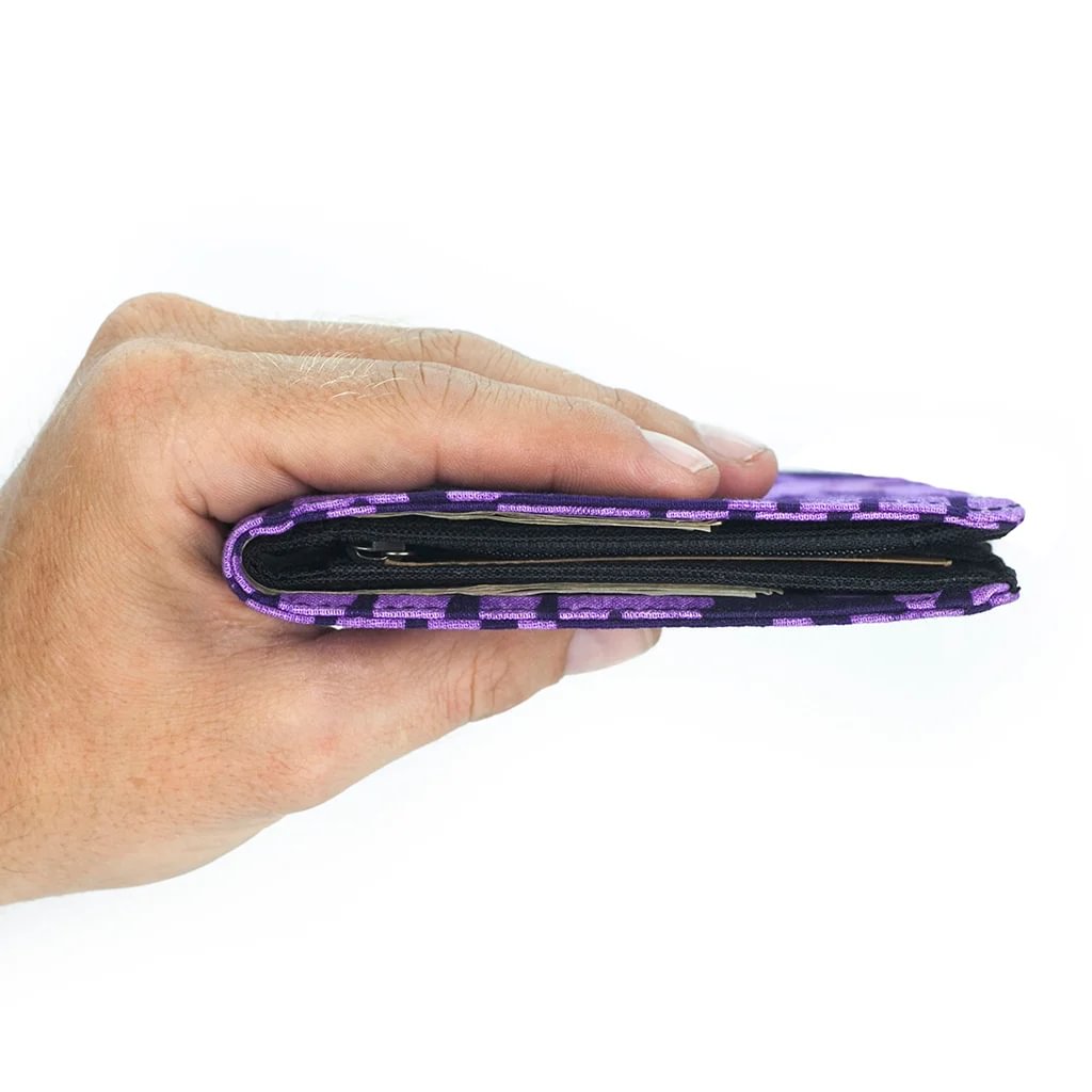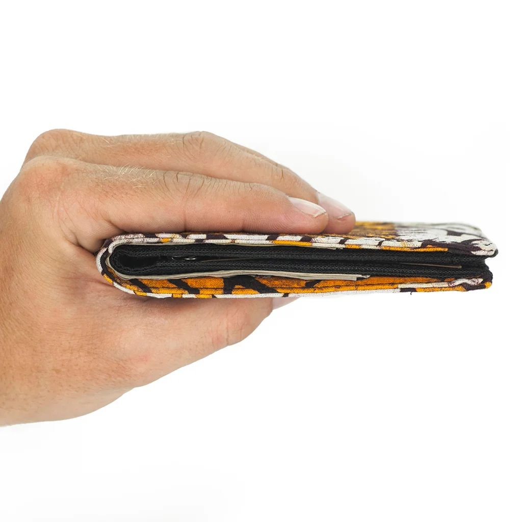 Deze portemonnee maakt indruk met zijn duurzame ontwerp en unieke karakter: hij is afgewerkt met handgemaakte textielsoorten van over de hele wereld. Ondanks zijn slanke profiel biedt hij veilige opbergruimte voor pasjes, munten en contant geld, terwijl hij toch aangenaam compact blijft.
