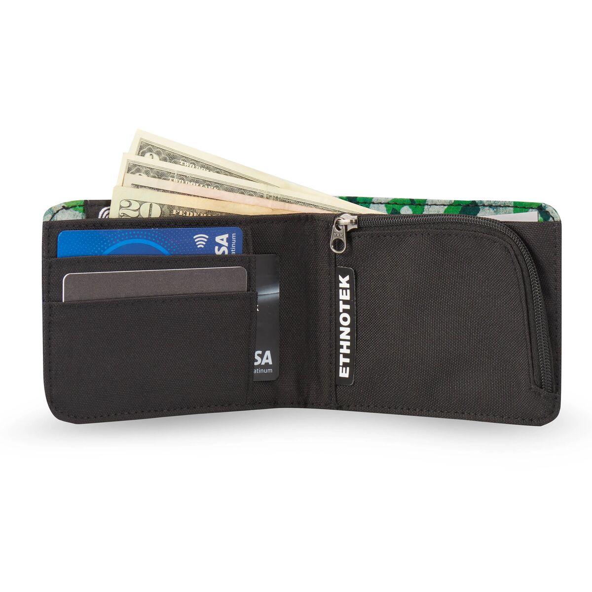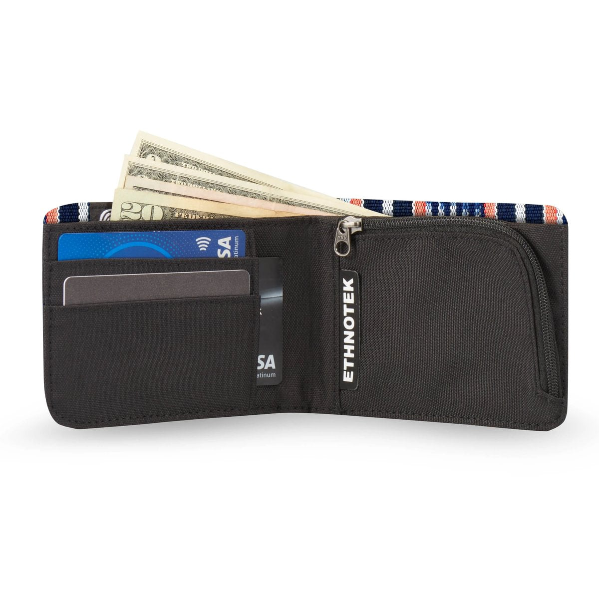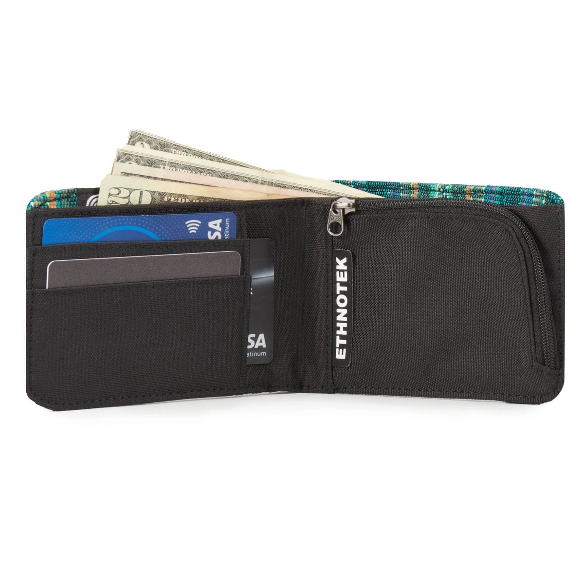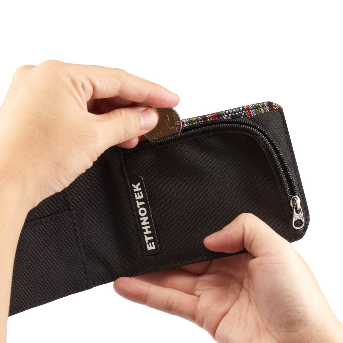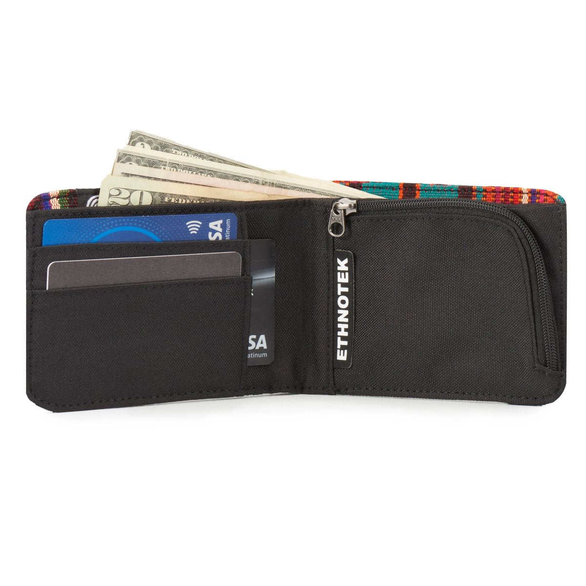 Deze portemonnee maakt indruk met zijn duurzame ontwerp en unieke karakter: hij is afgewerkt met handgemaakte textielsoorten van over de hele wereld. Ondanks zijn slanke profiel biedt hij veilige opbergruimte voor pasjes, munten en contant geld, terwijl hij toch aangenaam compact blijft.