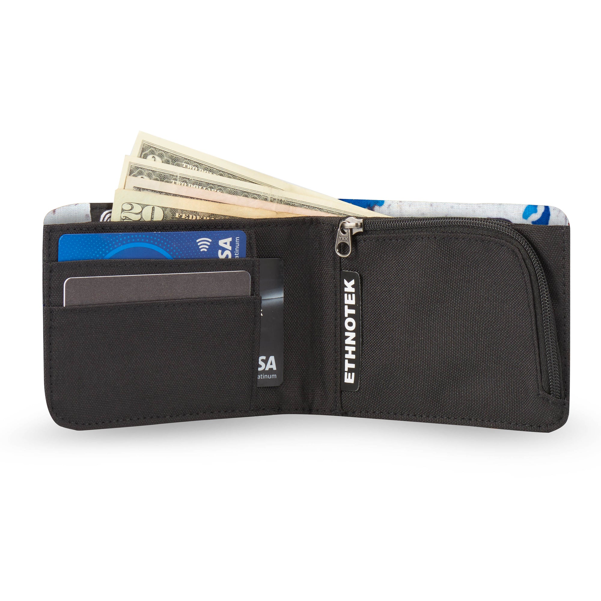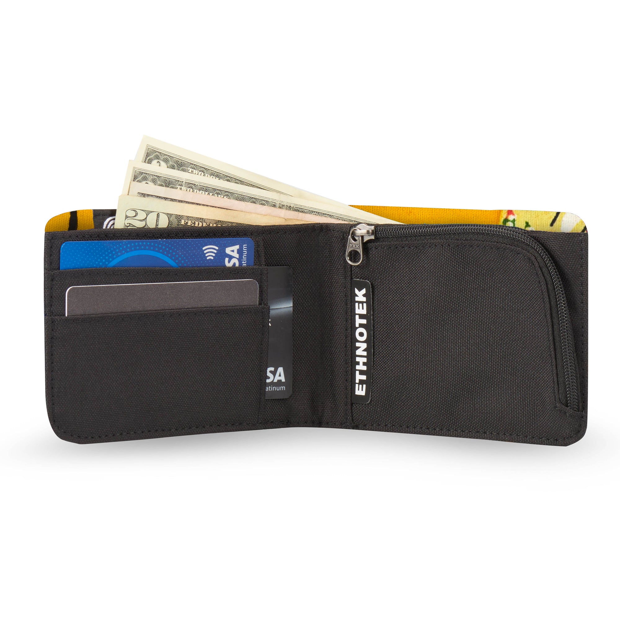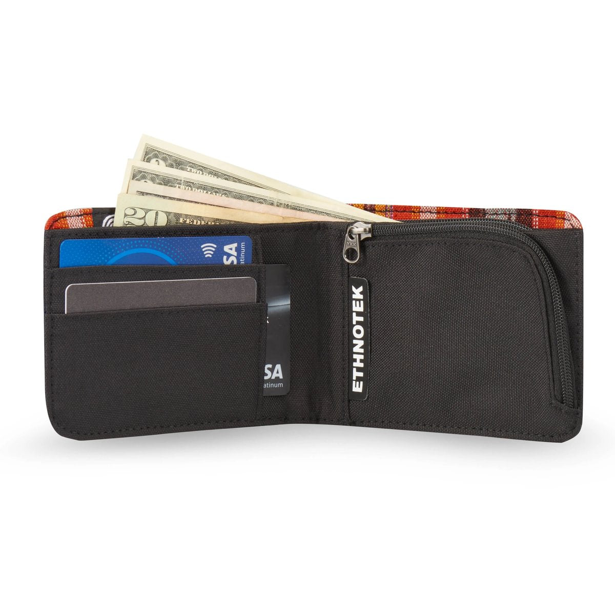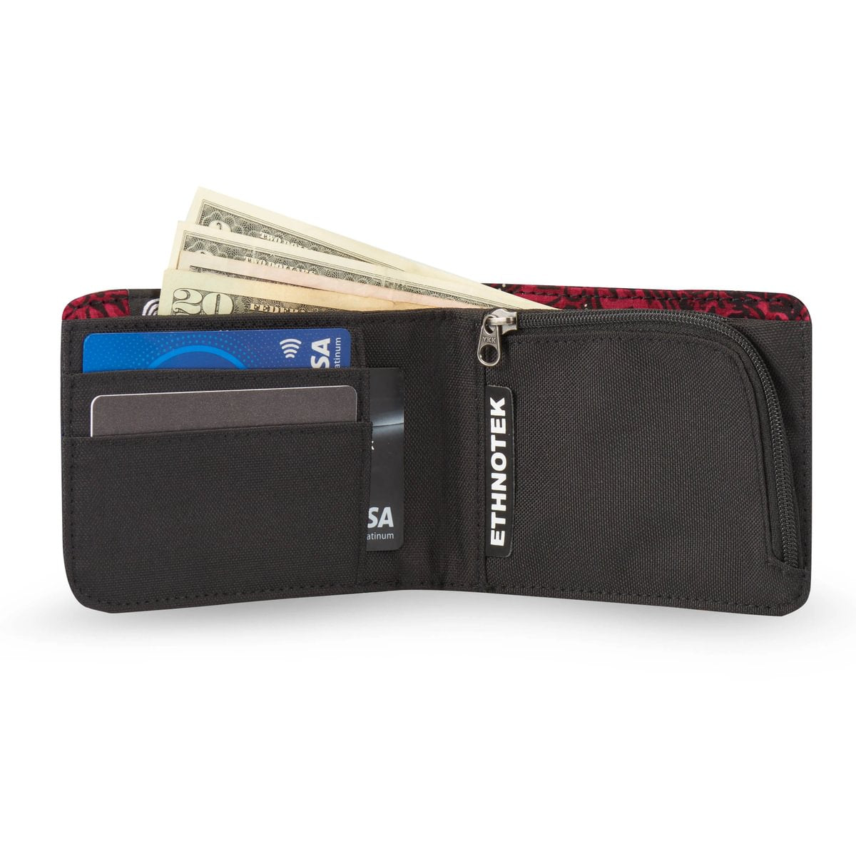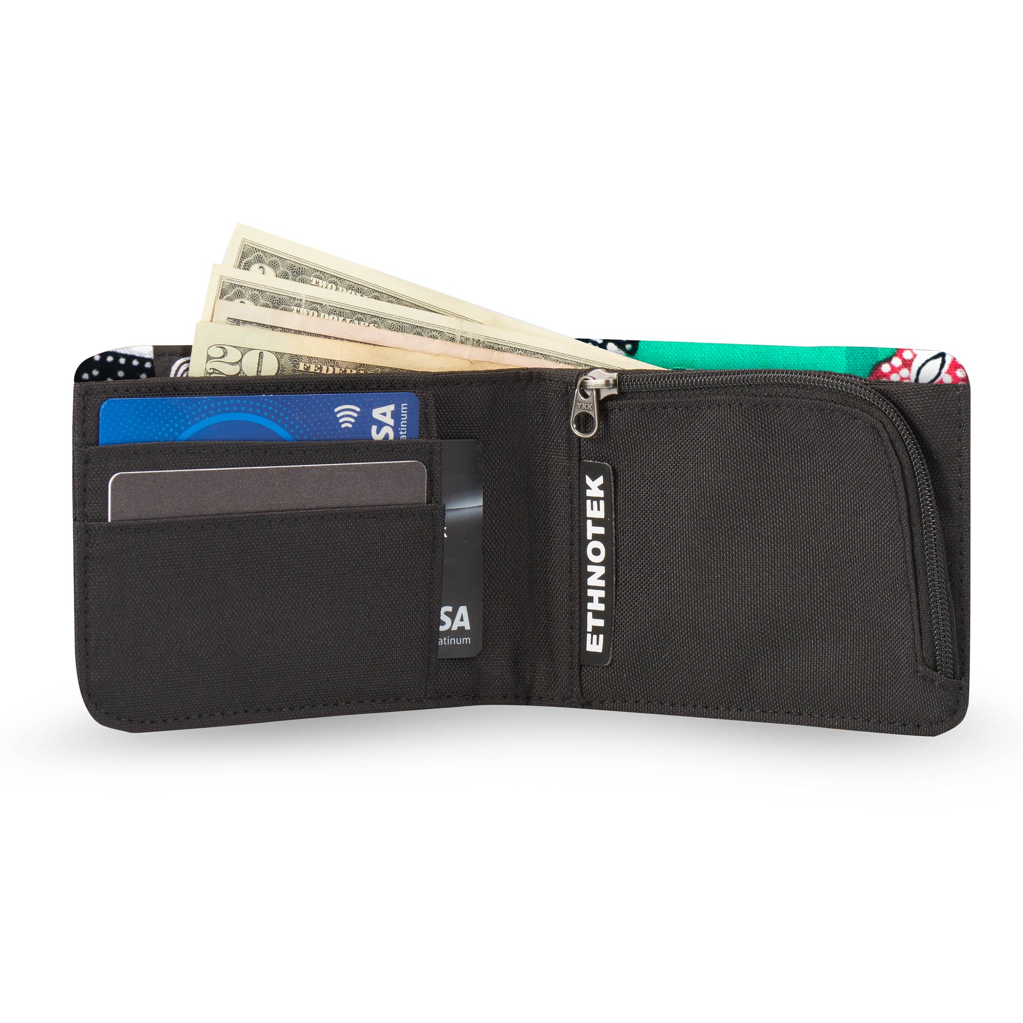 Deze portemonnee maakt indruk met zijn duurzame ontwerp en unieke karakter: hij is afgewerkt met handgemaakte textielsoorten van over de hele wereld. Ondanks zijn slanke profiel biedt hij veilige opbergruimte voor pasjes, munten en contant geld, terwijl hij toch aangenaam compact blijft.