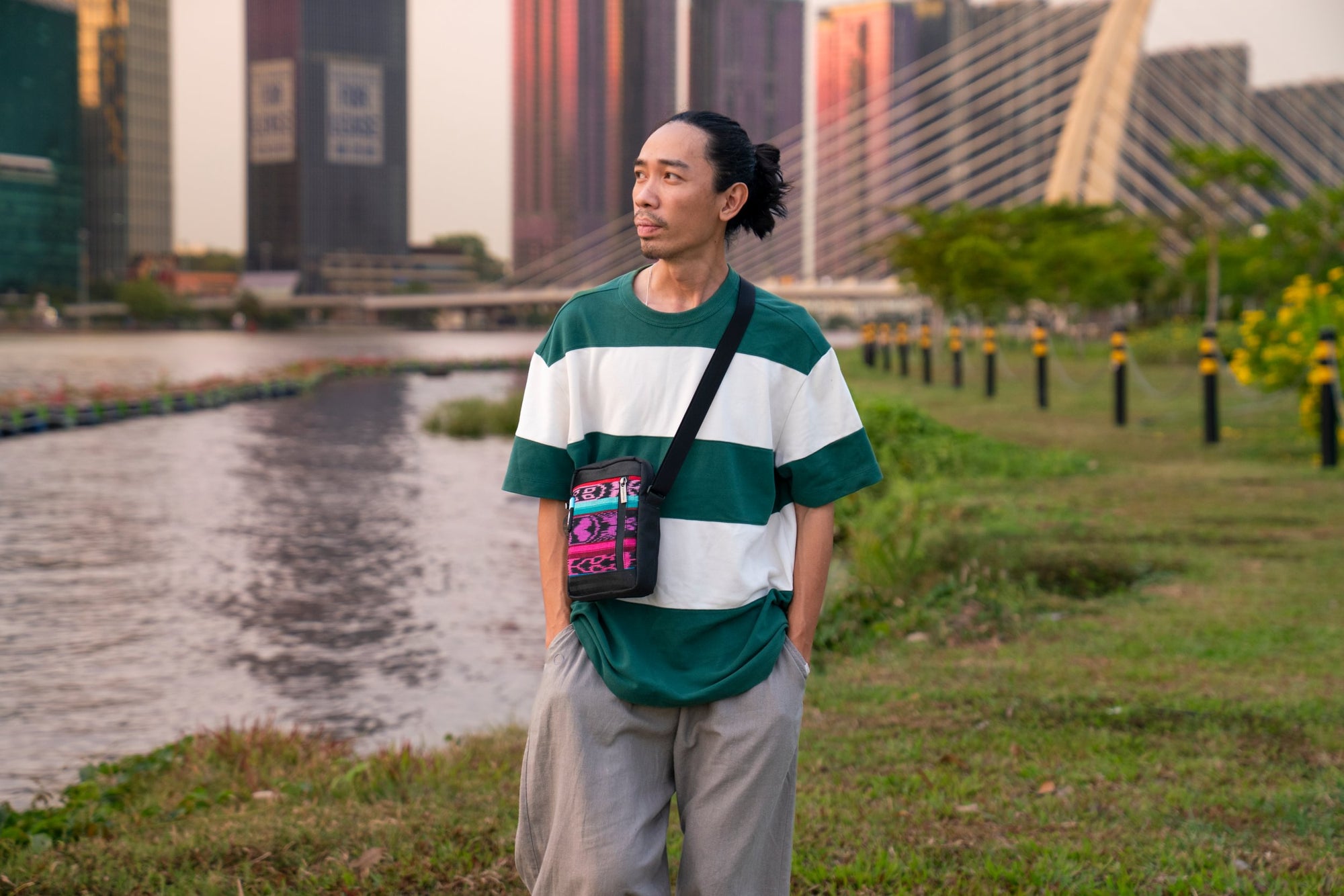 Hallo, ich bin Inrahani, und mein gewebter Stoff ist in vielen Taschen verarbeitet. Unsere Textilien werden auf einem Bambusrahmenwebstuhl im Dorf Phan Rang Tap Chap in Zentralvietnam hergestellt. Wir sind stolze Nachfahren des Champa-Königreichs und bedanken uns für deine Unterstützung.