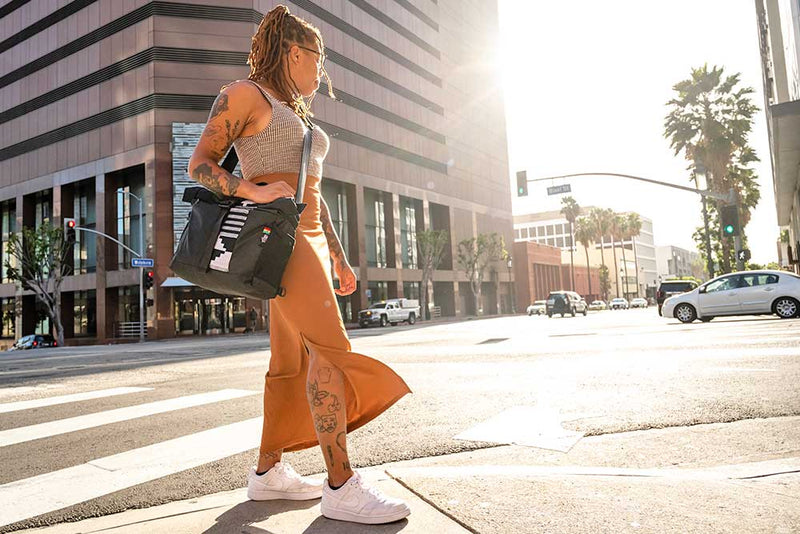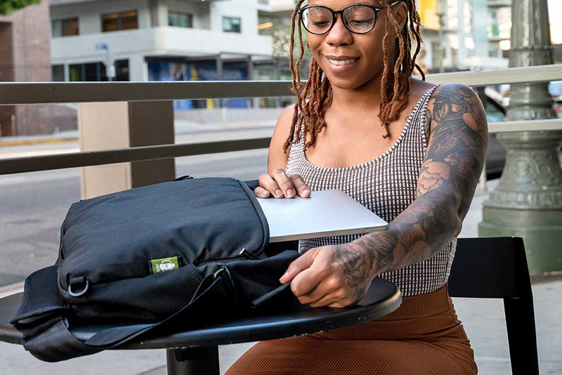 Die Cyclo Laptop Sling Bag ist eine Rolltop-Umhängetasche, die sich je nach Inhalt erweitern lässt. Das gepolsterte und kratzfeste Laptopfach bietet Platz für 13-16-Zoll-MacBook Pro und die meisten 15-Zoll-PC-Laptops. Auf das Laptopfach kann von außen zugegriffen werden, ohne dass das Hauptfach aufgerollt werden muss, was bei der Flughafensicherheit oder in Eile praktisch ist!