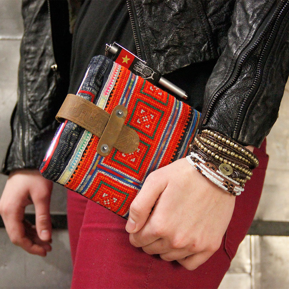 Hallo, ich bin Inrahani, und mein gewebter Stoff ist in vielen Taschen verarbeitet. Unsere Textilien werden auf einem Bambusrahmenwebstuhl im Dorf Phan Rang Tap Chap in Zentralvietnam hergestellt. Wir sind stolze Nachfahren des Champa-Königreichs und bedanken uns für deine Unterstützung.