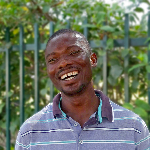 Hallo, ich bin Charles Acquah, ich stamme aus dem Dorf Somanya und habe eine Werkstatt in Accra, wo ich zusammen mit meinem Sohn Nathaniel die Batikstoffe aus Ghana für Ethnotek herstelle. Unsere Motive sind von traditionellen Adinkra-Symbolen inspiriert.