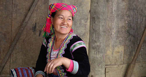 Hallo, ich bin Che und gehöre zu einer Gruppe von 96 Kunsthandwerkerinnen im nördlichen Hochland von Vietnam, die in Zusammenarbeit mit Ethnotek handbestickte Textilien herstellen.Wir Hmong-Frauen stellen nur 2 Stammesröcke pro Jahr her. Das kunstvolle Sticken ist unser liebstes Hobby, das wir in den Pausen von unserer landwirtschaftlichen Arbeit ausüben. Dieses Kunsthandwerk ist unser Erbe, das wir mit Stolz bewahren und es macht uns Spaß, weil wir uns dabei oft treffen und miteinander lachen und scherzen.