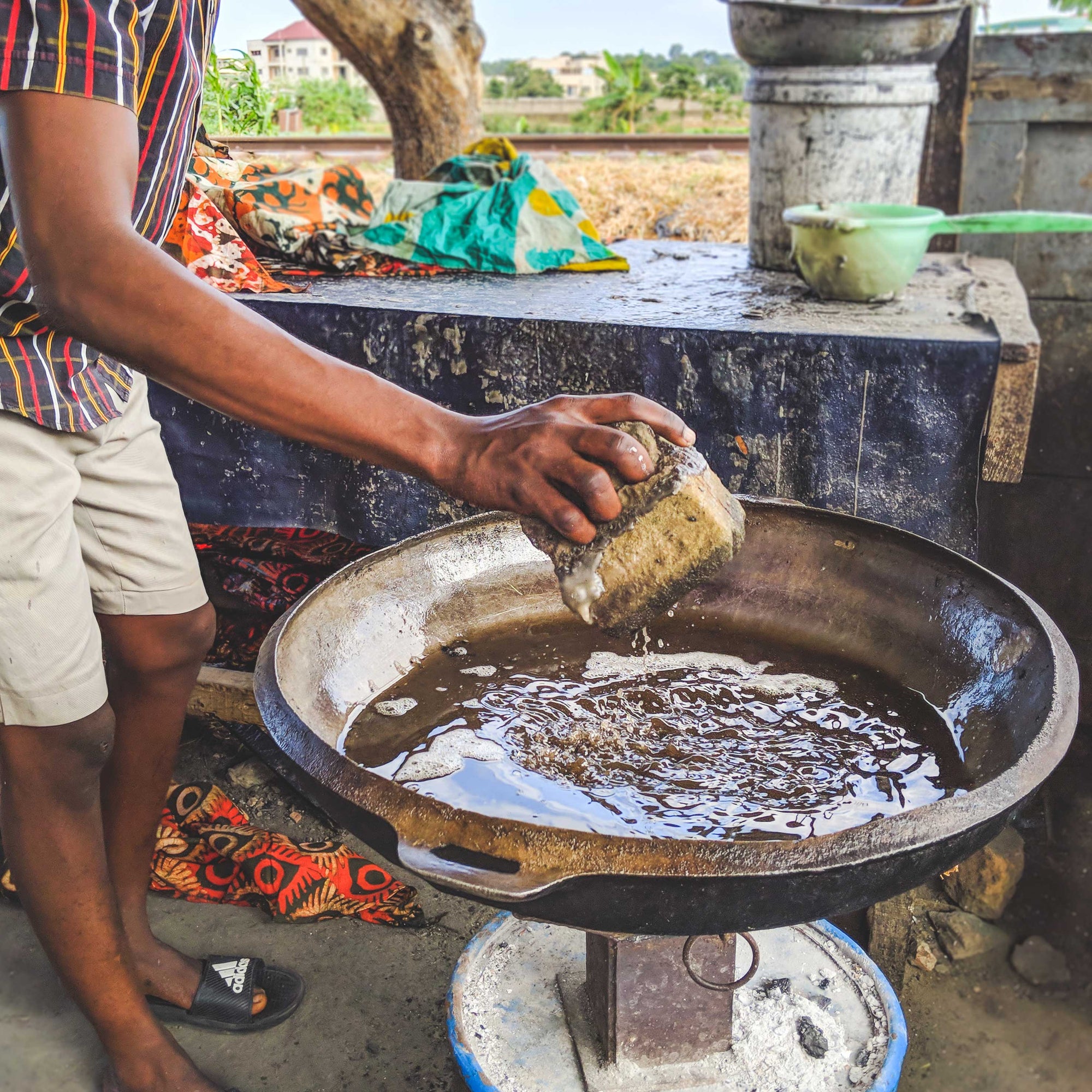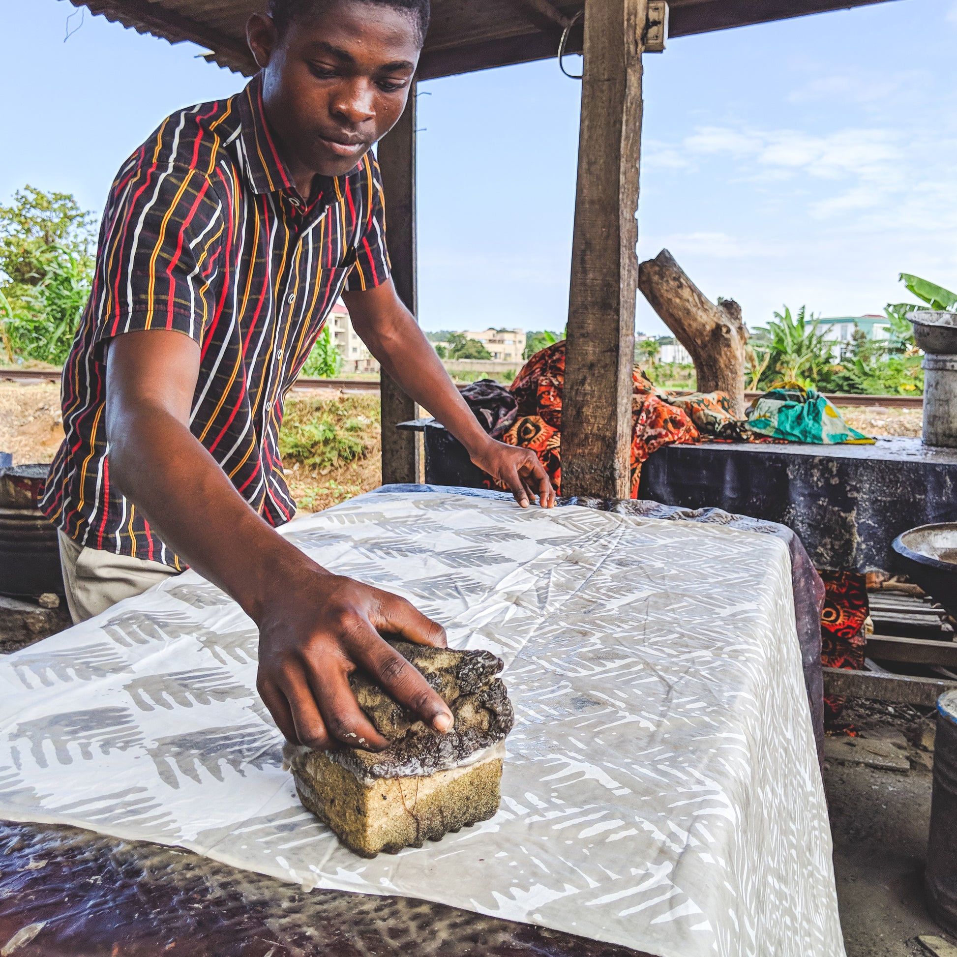 Hallo, ich bin Charles Acquah, ich stamme aus dem Dorf Somanya und habe eine Werkstatt in Accra, wo ich zusammen mit meinem Sohn Nathaniel die Batikstoffe aus Ghana für Ethnotek herstelle. Unsere Motive sind von traditionellen Adinkra-Symbolen inspiriert.